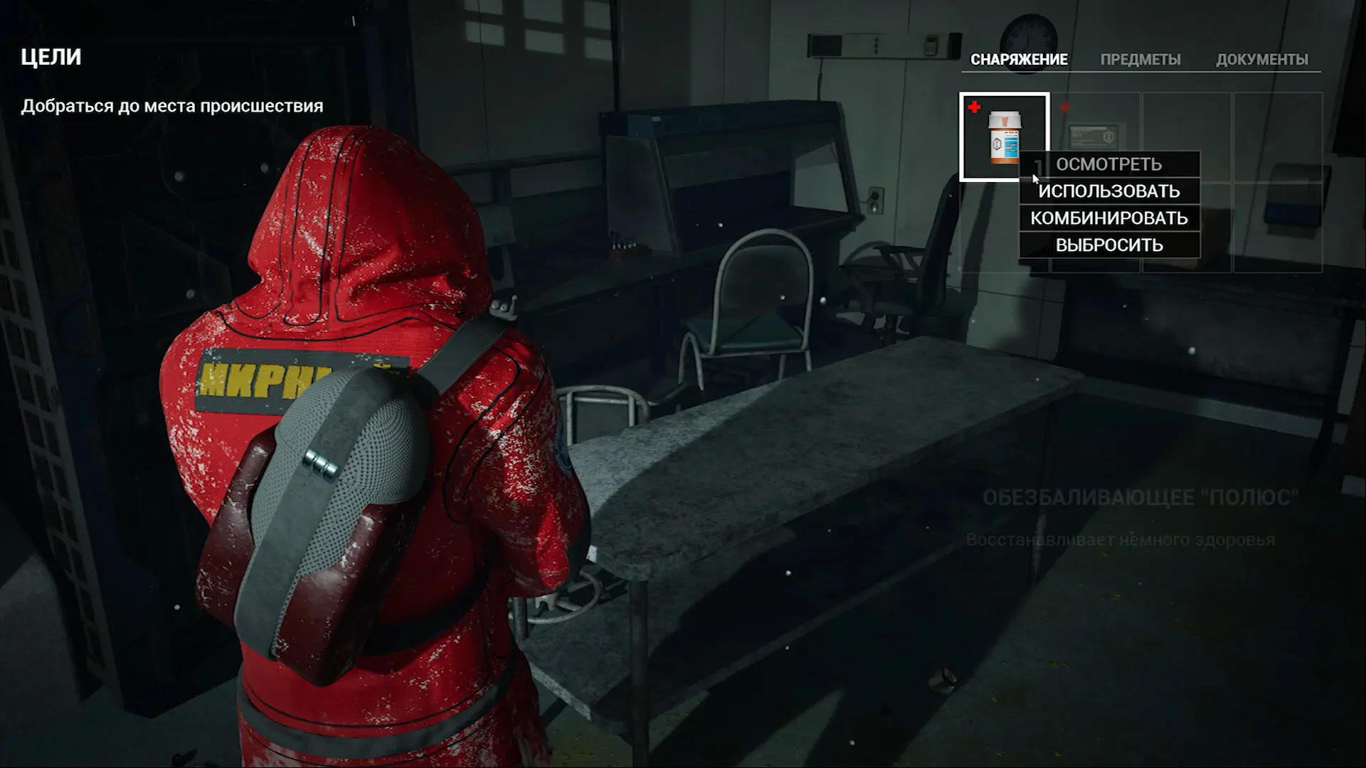 - Комната наблюдения, залитая красным светом.